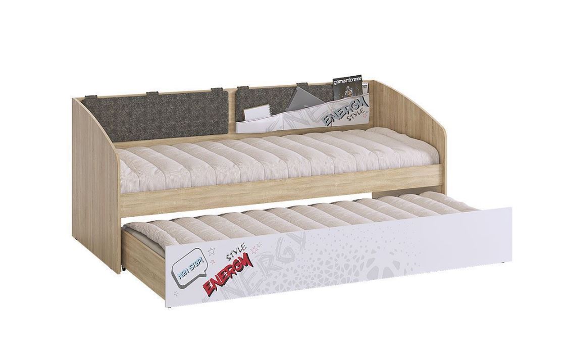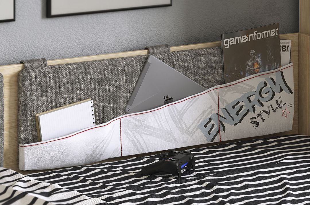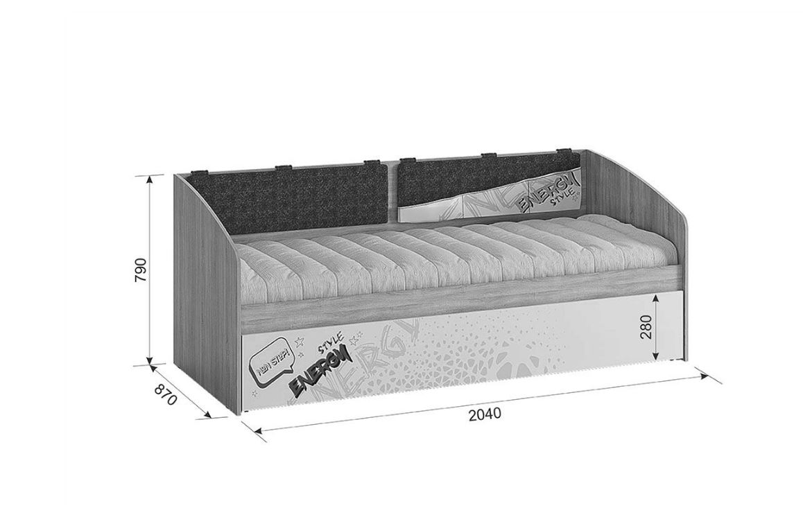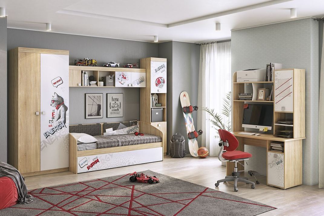 Дополнительное удобное спальное место или большой выдвижной ящик для хранения постельного белья и игрушек, на выбор, решать вам. Стильный принтерный рисунок на фасаде, и карманах. Чехлы подушек съемные, что позволит обеспечить чистоту и порядок. Детская «Энерджи» - это стильная, современная детская, которая понравится каждому ребенку. Рисунок устойчив к истиранию и ультрафиолету.