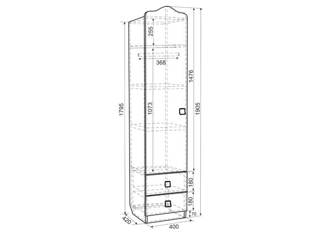 Модный и стильный шкаф со сказочным принтерным рисунком на фасадах - находка для детской комнаты. Рисунок устойчив к истиранию и ультрафиолету. Оснащен штангой для одежды, двумя вместительными выдвижными ящиками для белья и двумя съемными полками.