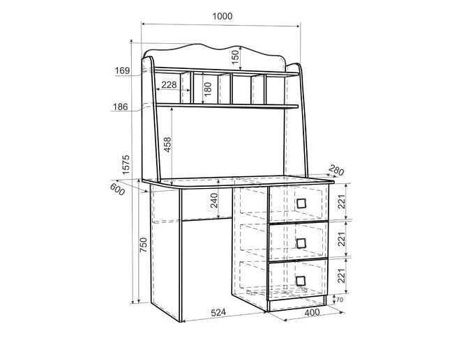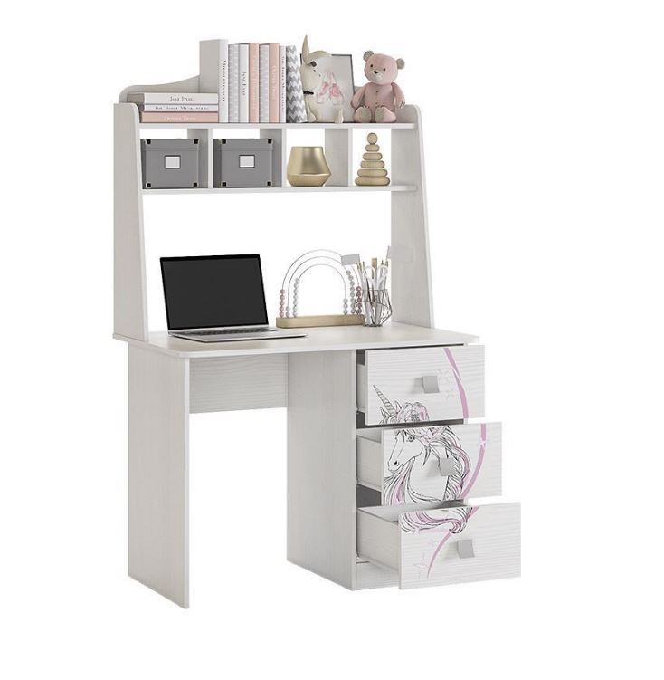 Письменный стол с надстройкой - лучшее решение для обустройства рабочего места ребенка. Компактная модель оснащена просторной столешницей, тумбой с тремя выдвижными ящиками и надстройкой с открытыми полками для книг, тетрадей, игрушек и элементов декора.
