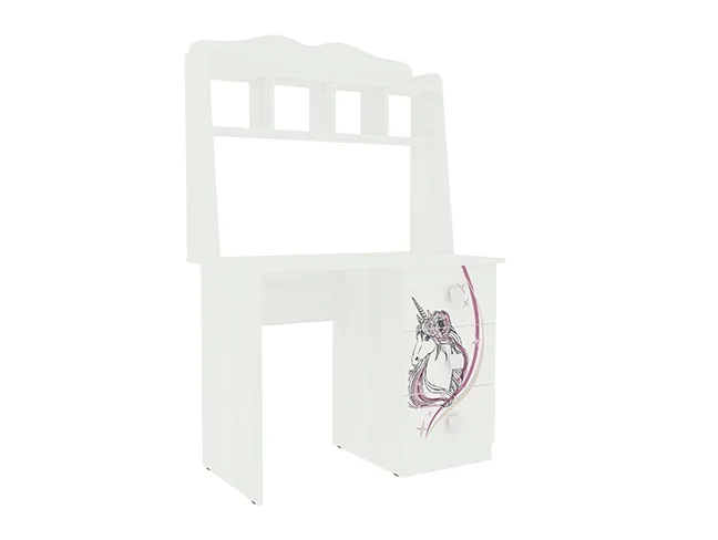 Корпус и фасады стола выполнены в мягком белом цвете, а на фасады нанесен устойчивый к истиранию и ультрафиолету рисунок.