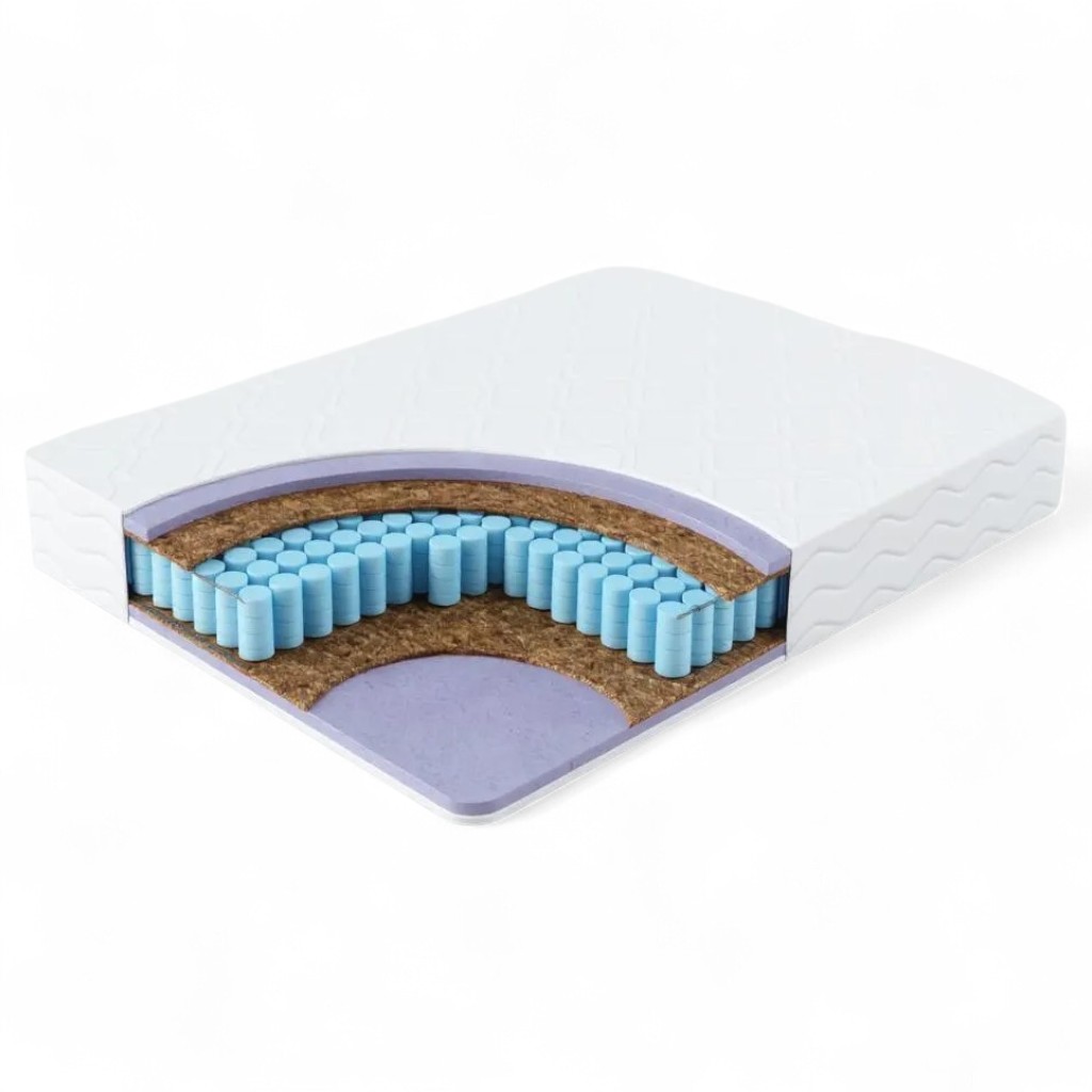 Двойной слой кокосового волокна – повышает жесткость матраса, равномерно распределяет нагрузку и улучшает воздухообмен во время сна.