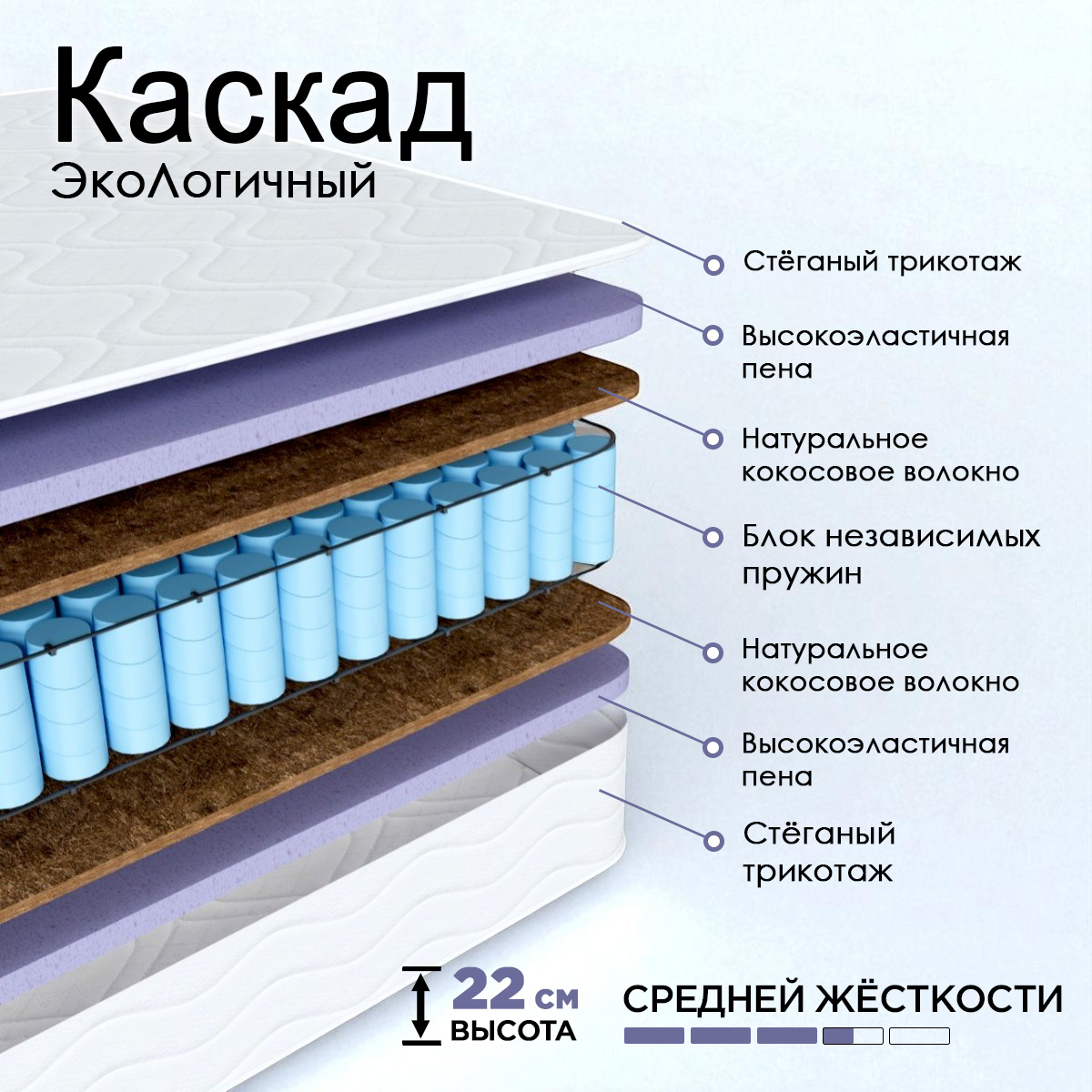Матрас «Комфорт Экологичный Каскад» – идеальный баланс комфорта, здоровья и качества сна.