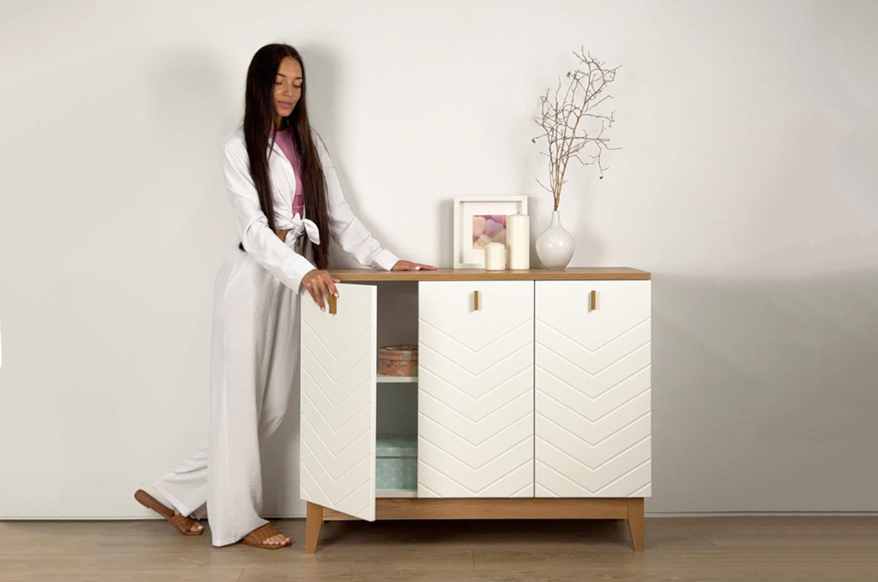 Классический трехдверный комод в скандинавском стиле. Модель отличается лаконичным дизайном, продуманной конструкцией и использованием качественных материалов. Идеально подходит для организации хранения в спальне, гостиной или прихожей.