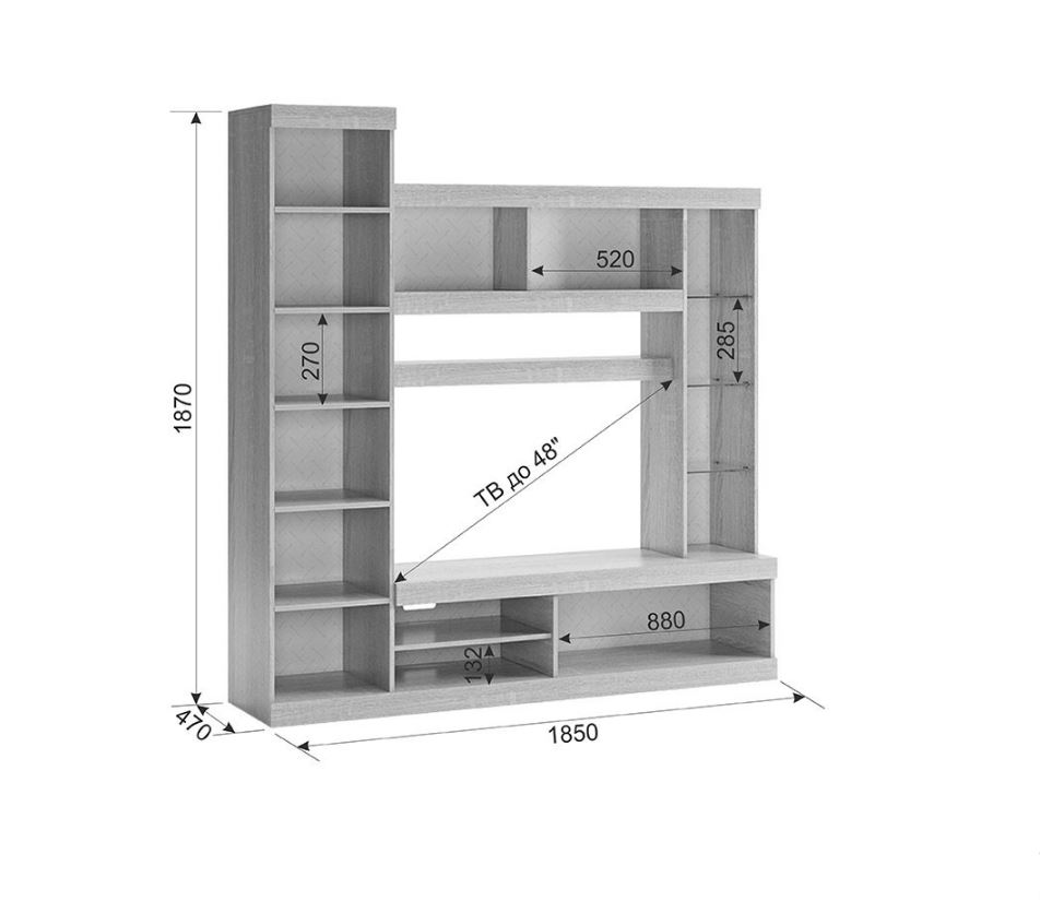 • Ниша под ТВ: до 48 дюймов