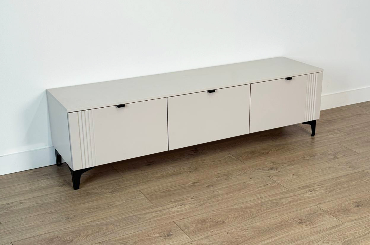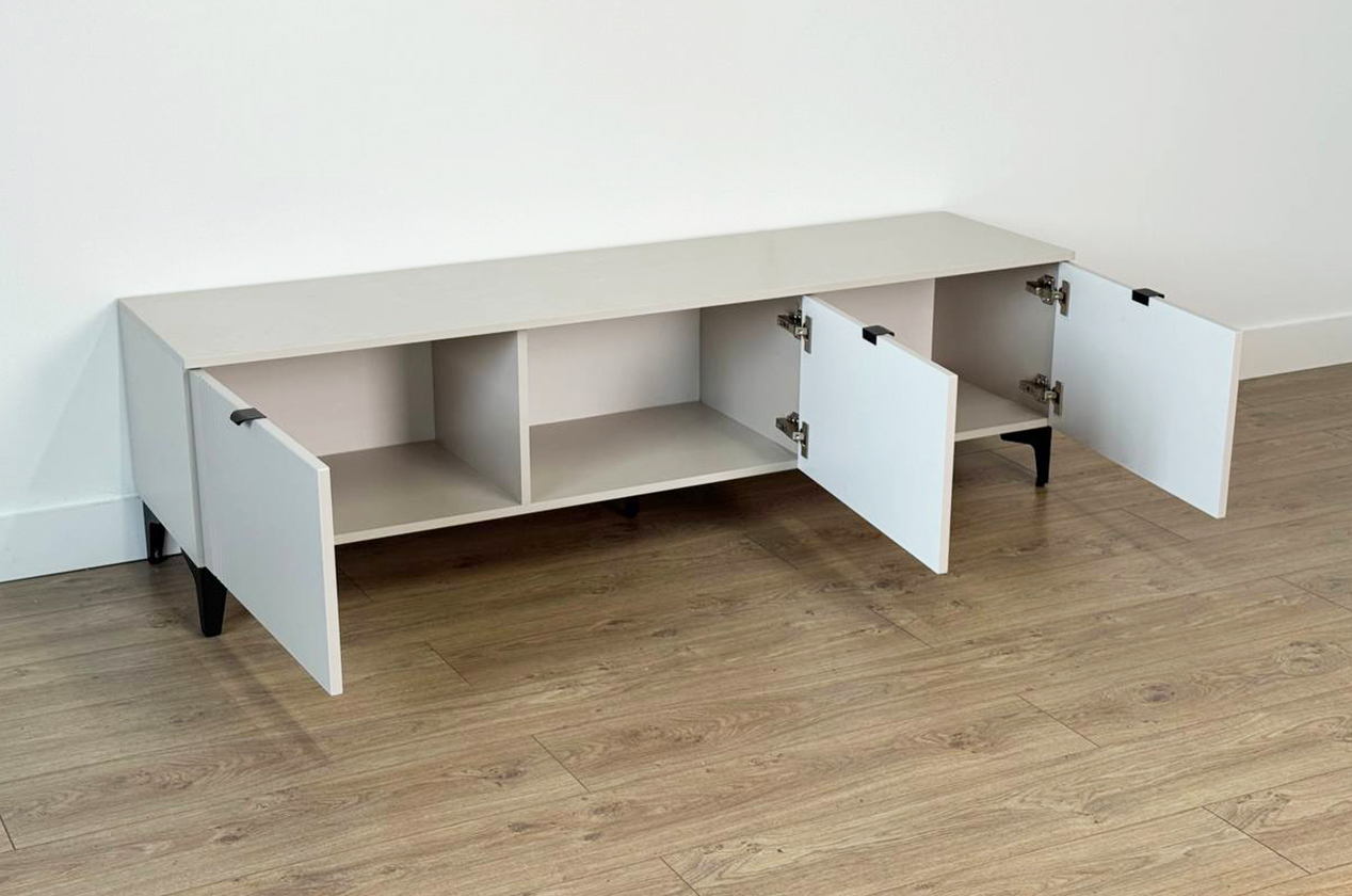 • • Вместительное хранение: Три распашные дверцы открывают доступ к просторным полкам для систематизации вещей.