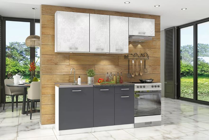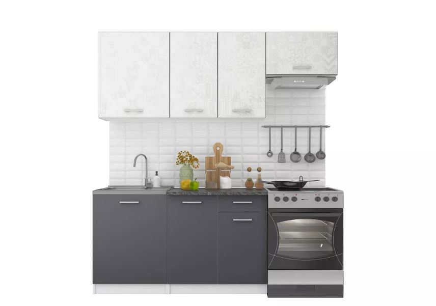 Кухонный гарнитур Бланка СТЛ.218.00" Белый/Орех мармара/Спринт/Антрацит 1,4м
