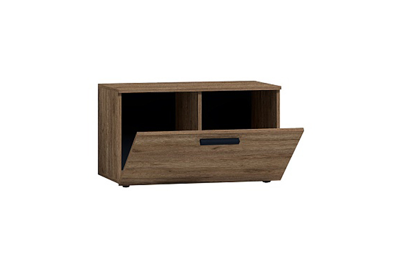 Компактная тумба под обувь поможет функционально обустроить зону прихожей. За откидным фасадом два вместительных отделения.
