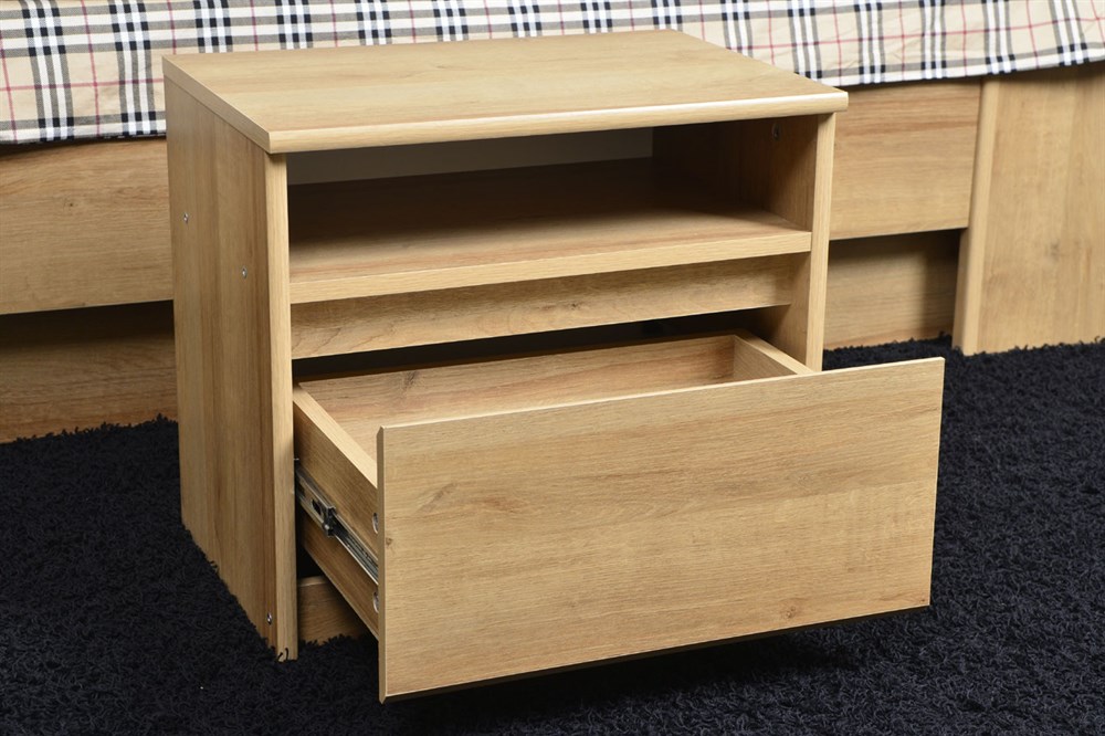 Конструкция включает в себя один выдвижной ящик на шариковых направляющих, которые обеспечивают бесшумное открывание и одну открытую нишу.