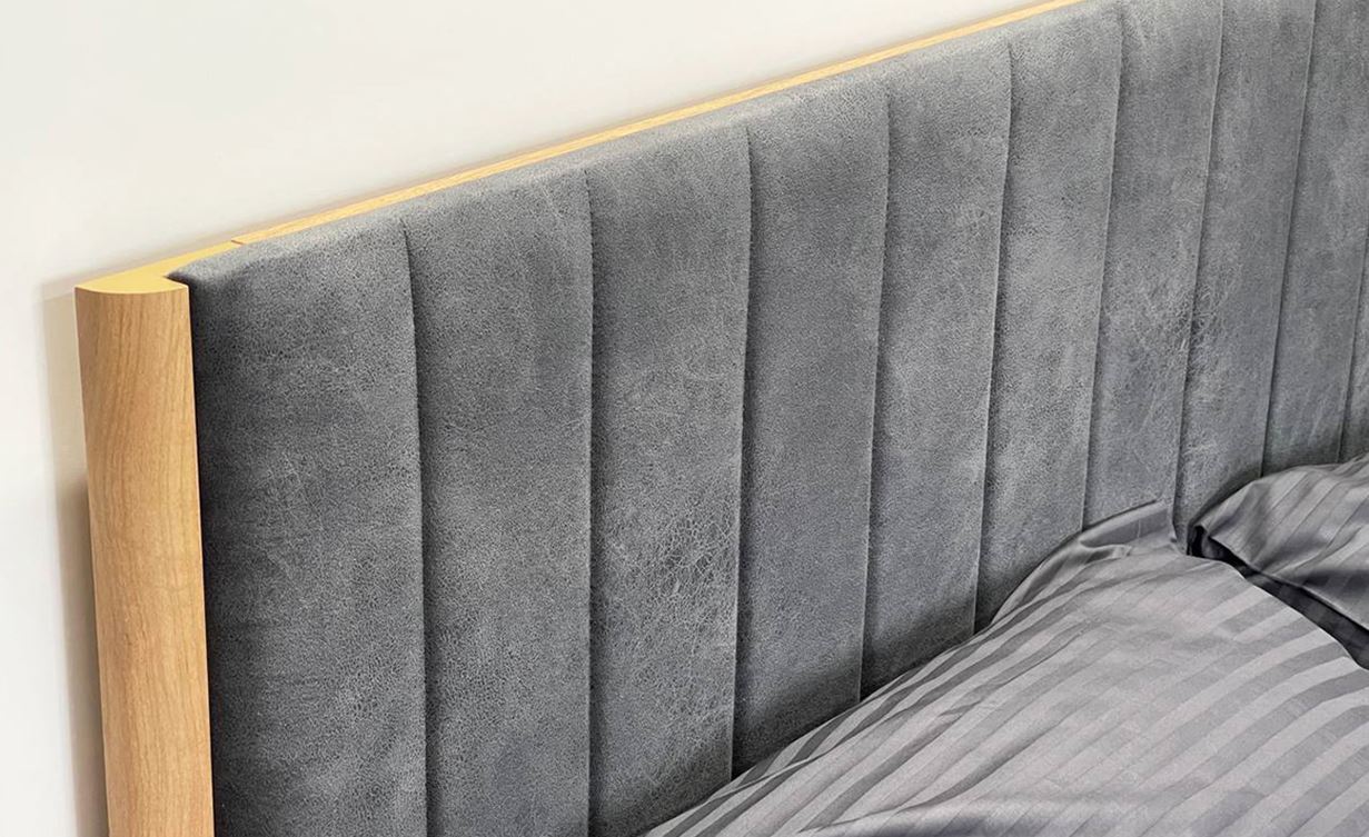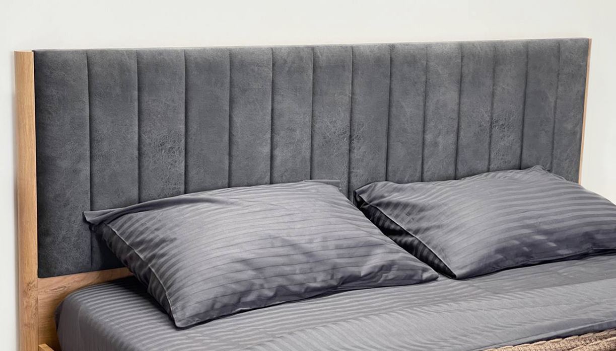 • Мягкое изголовье: Изголовье выполнено из ЛДСП с мягким элементом — приятный на ощупь и практичный в уходе материал. Оно создает дополнительный комфорт при чтении или просмотре телевизора перед сном.