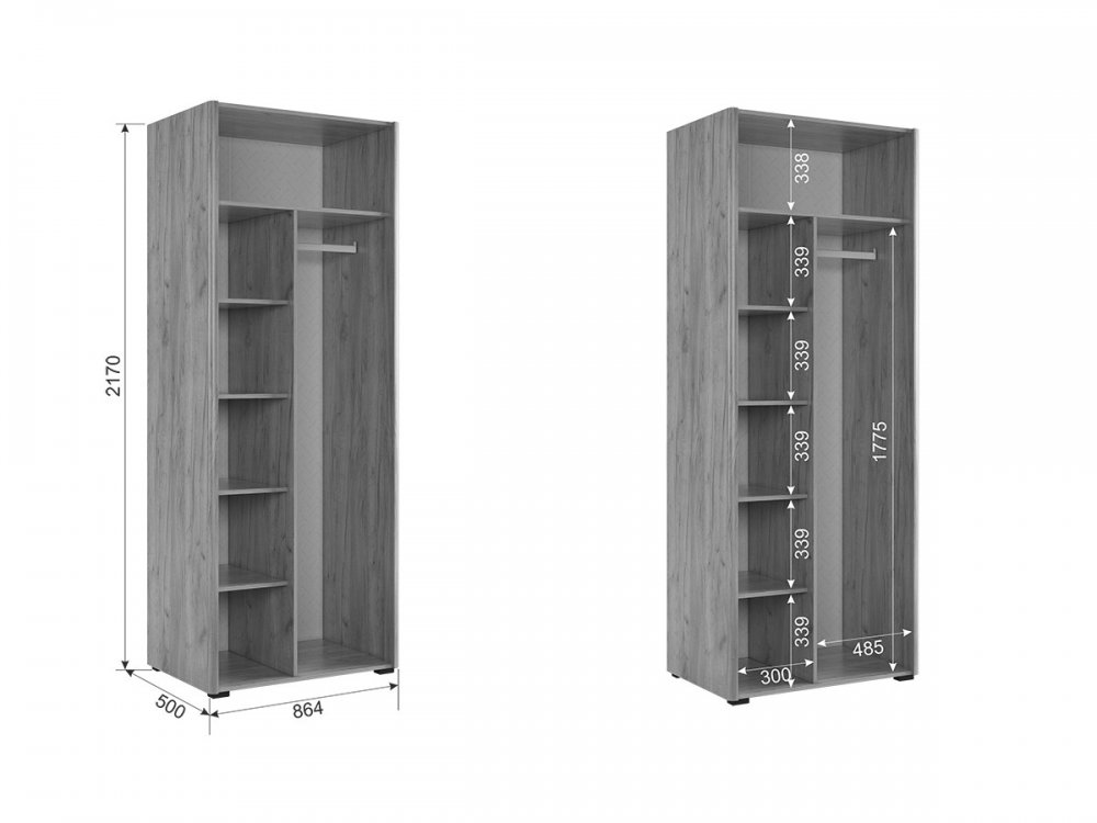 • Размеры (ШхВхГ): 864 x 2170 x 500 мм