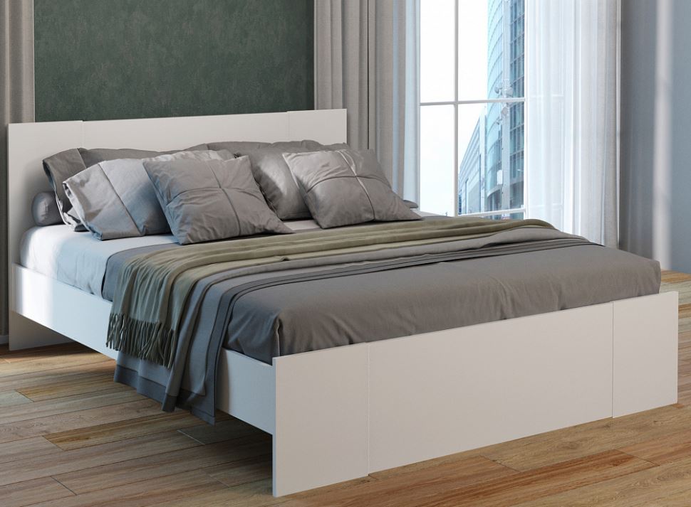 Кровать с лаконичным дизайном и универсальным белым цветом.