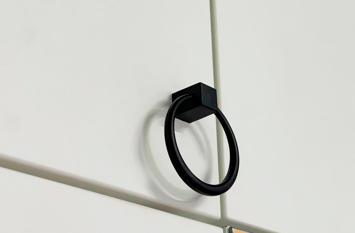 Металлические ручки в тон фасаду дополняют лаконичный дизайн.