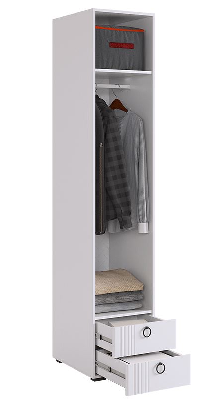 Шкаф «Ева» 101.01 — это продуманное решение для небольших помещений. При ширине всего 40 см модель вмещает всё необходимое: от одежды на плечиках до мелких аксессуаров. Лаконичный дизайн и качественные материалы делают его идеальным выбором для спальни, прихожей или детской.