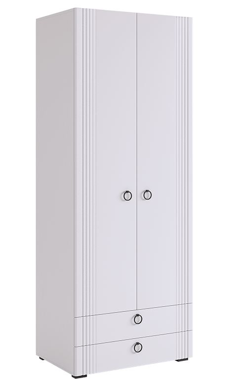Двухдверный шкаф Ева 103.01 с двумя ящиками — белое дерево/белый матовый