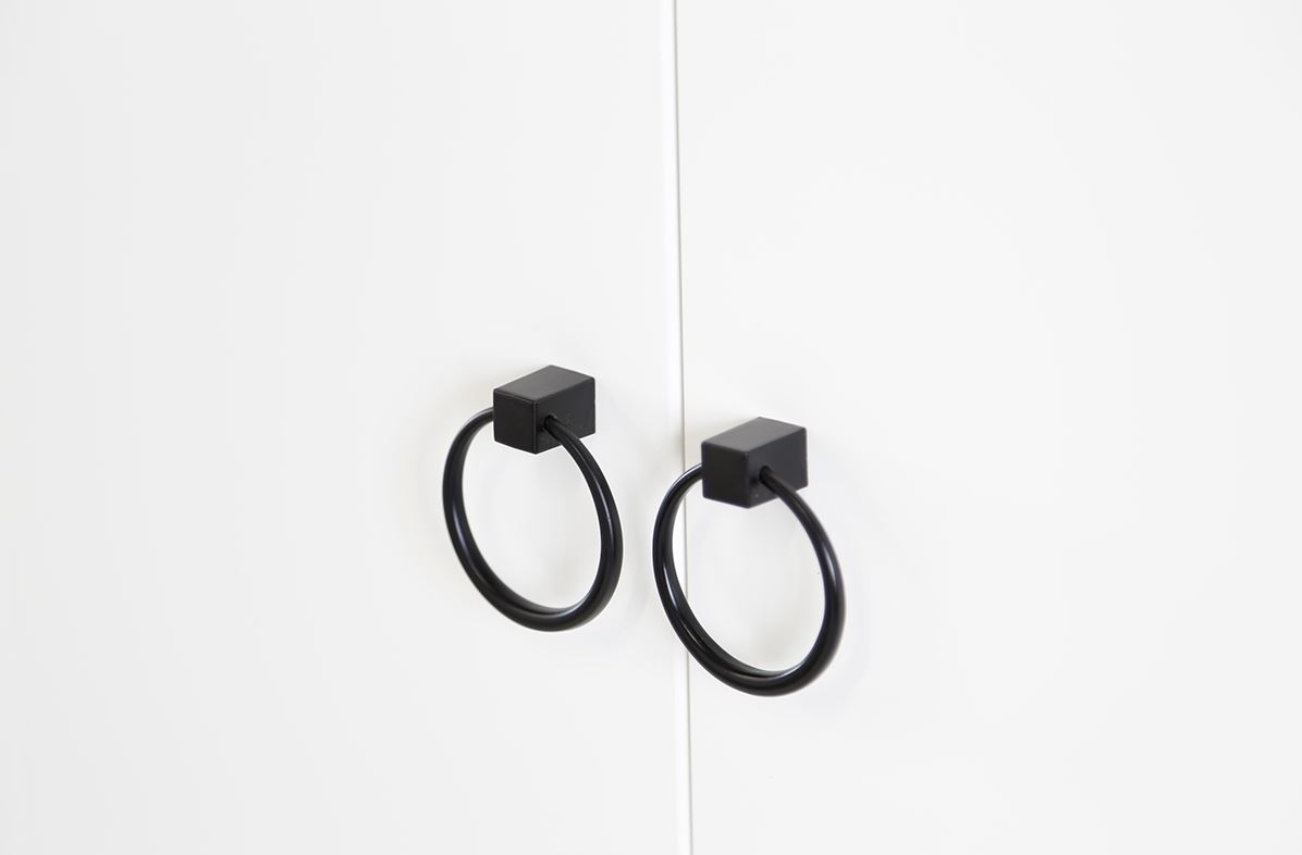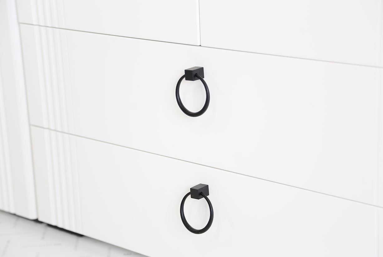 Металлические ручки и черные пластиковые опоры высотой 20 мм завершают лаконичный образ.