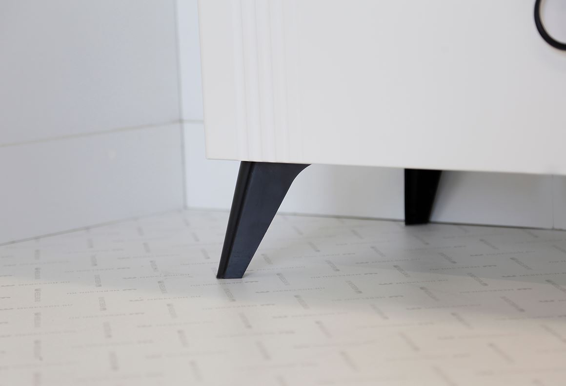 • Черные пластиковые опоры высотой 120 мм визуально облегчают конструкцию и облегчают уборку под тумбой.