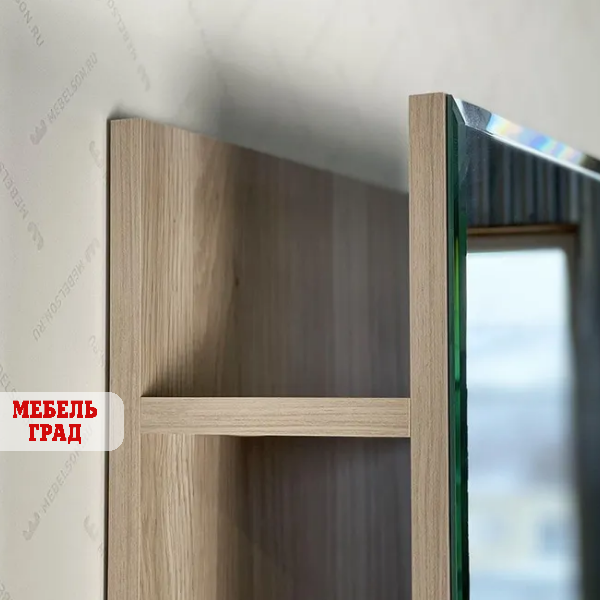 Кромка зеркала по периметру обработана фацетом, благодаря такой обработке, изделие преображает пространство комнаты. Грани зеркала красиво преломляют свет и блестят на солнце.