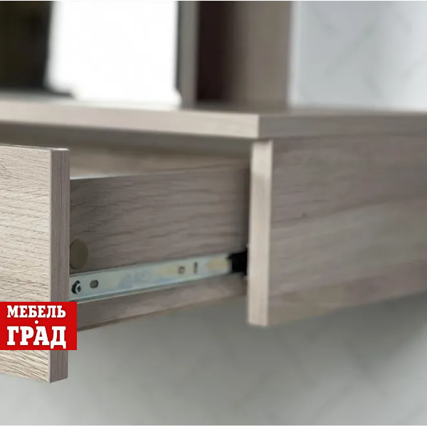 В выкатном ящике под столешницей разместится много нужных вещей. Направляющие у ящика шариковые.