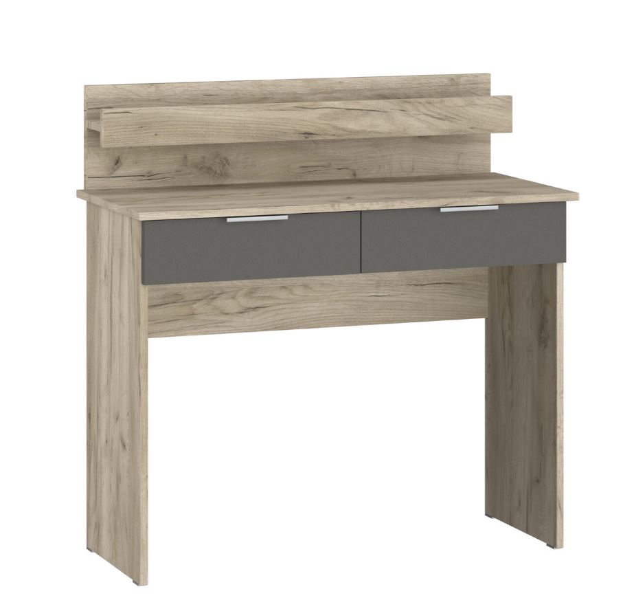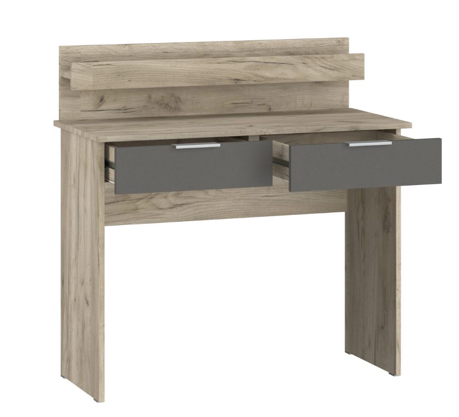 Покрытие стола матовое, имеет деревянную текстуру. В выдвижных ящиках используются качественные направляющие.